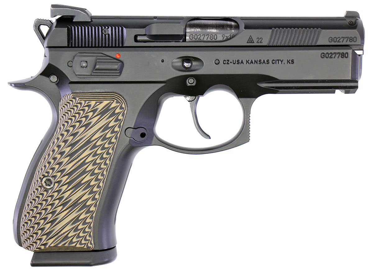 This is a used CZ 75 P01 Omega pistol chambered in 9mm. It features a 3.6-inch barrel, 15-round magazine, fixed sights, ambidextrous thumb safety, G10 grips, and accessory rail. Includes factory box, instruction manual, two magazines, and the OEM black rubber grips. Overall, this CZ is in good condition with normal use wear on the slide and barrel. This would be a good choice for home defense. Buy online today! - Brand