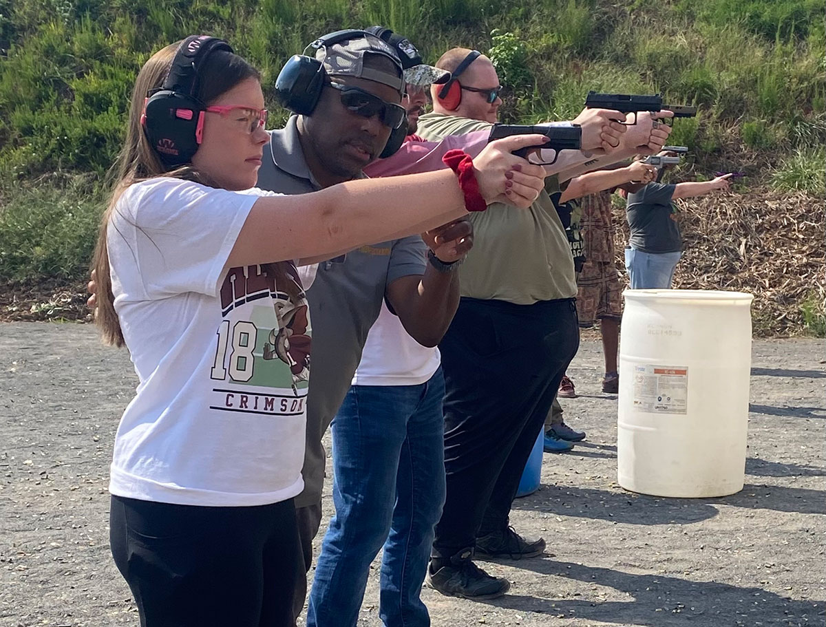 The class runs from 9 a.m. to 5 p.m. You are welcome to bring your own gun.
