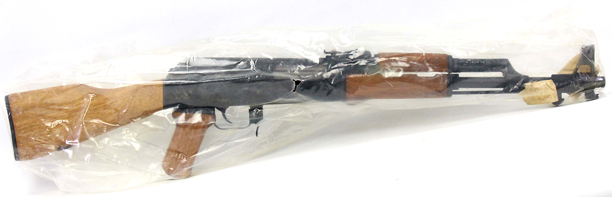 This is a collectible Pre-Ban PolyTech AKS-762 AK-47 rifle chambered in 7.62x39. It features a 16-inch barrel, 30-round magazines, hooded front sight, tangent rear sight, folding spike bayonet, wood furniture, blued finish, and stamped receiver. Includes factory box, instruction manual, three 30-round magazines with chrome followers, oil bottle, canvas sling, and spike bayonet. This rifle is still sealed and is in new old stock condition. This rifle was manufactured prior to the 1994 assault weapons ban. This would be a great choice for collectors. Buy online today! - Brand