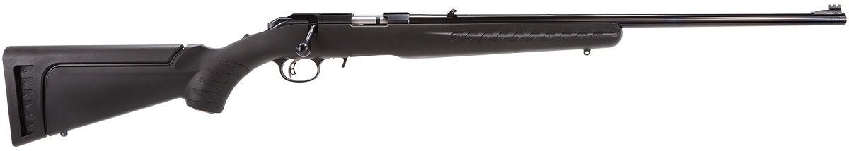 Ruger's American Rimfire rifle features a patent-pending Power Bedding integral bedding block system which positively locates the receiver and free-floats the barrel for outstanding accuracy. The cold hammer-forged barrel results in ultra-precise rifling which provides exceptional accuracy, longevity and easy cleaning. The American Rimfire rifle also has a Ruger Marksman Adjustable trigger, tang safety, easy-to-use 10/22-style extended magazine release, and a 3/8" rimfire scope base that is machined into the receiver, which is also drilled and tapped. Included is Williams' fiber optic front sight and adjustable, "V" slot, folding-leaf rear and sling swivel studs. This Standard model has a 22" blued barrel, black synthetic stock with two long length of pull modules, and a detachable, flush-mounted JMX-1 9-round rotary magazine. - Brand