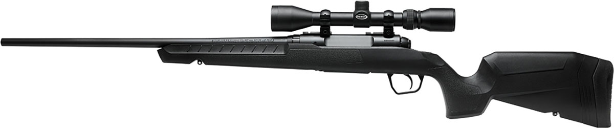 The AXIS XP with improved ergonomics, the AXIS XP is loaded with features that deliver tack-driving accuracy on every shot, including precision button rifled barrels and thread-in headspacing. The bolt handle with a sleek, ergonomic design delivers on functionality. This bolt handle will help to enhance user control and comfort during operation, especially in adverse conditions like rain or cold weather. Includes a factory mounted Weaver 3-9x40 scope, 2 piece Weaver style base and magazine.