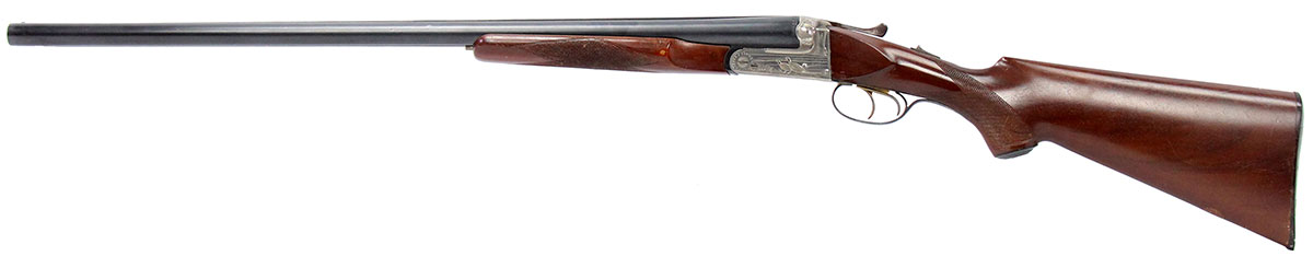 This is a used Spanish EIG-Eibar side-by-side shotgun chambered in 12 gauge. It features 28-inch barrels, 3-inch chambers, fixed full choke, fixed modified choke, and automatic safety. Overall, this Shotgun is in good condition with some handling wear on the stock. Top lever is centered and lock up is good. This would be a good choice for hunting. Buy online today! - SKU10122075