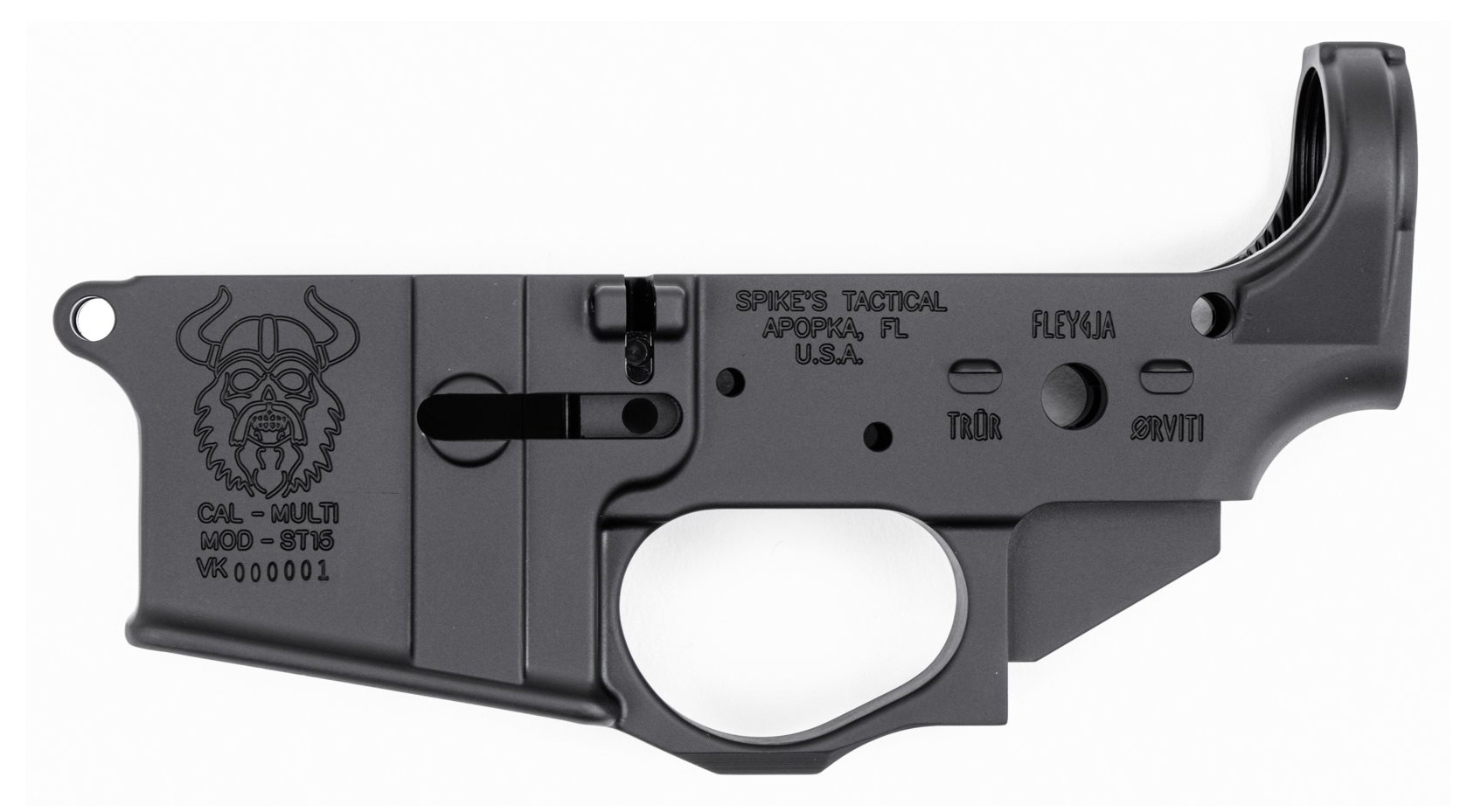 Spike's Tactical stripped lower is made to the highest standards. Forged from 7075 T6 aluminum it supports multi-calibers, has a black hard coat anodized finish, low shelf, and is RDIAS compatible. This model features a Viking logo. Related products