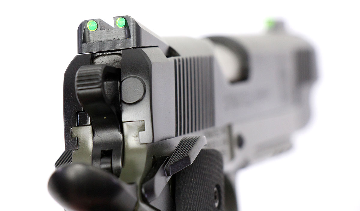 This is a used Springfield Armory Loaded Marine Corps Operator 1911 pistol chambered in 45 ACP. It features a 5-inch barrel, 7-round magazine, fiber optic sights, ambidextrous thumb safety, grip safety, Pachmayr rubber grips, and accessory rail. Overall, this Springfield is in good condition with normal wear on the barrel, frame, and slide. This would be a good choice for home defense. Buy online today! - Brand