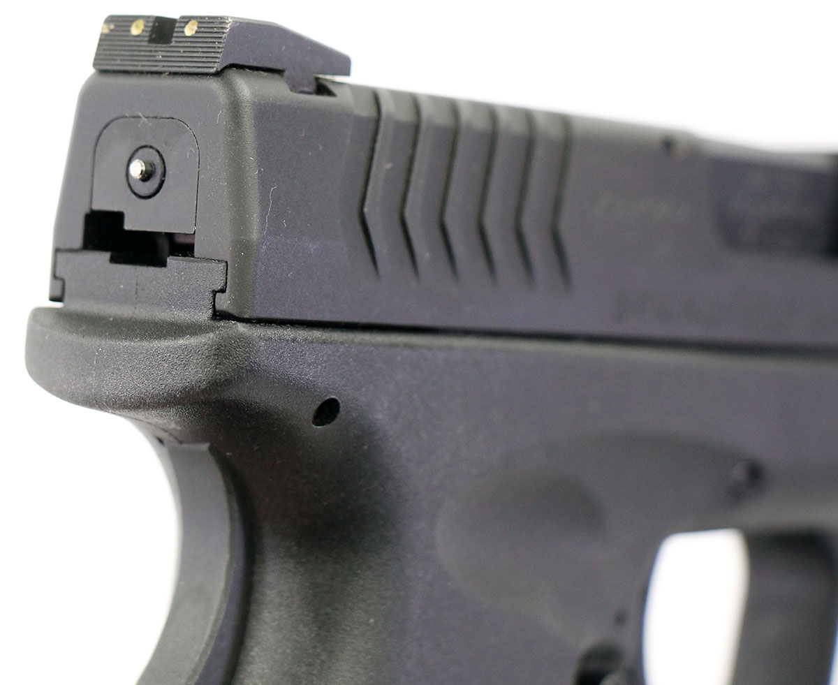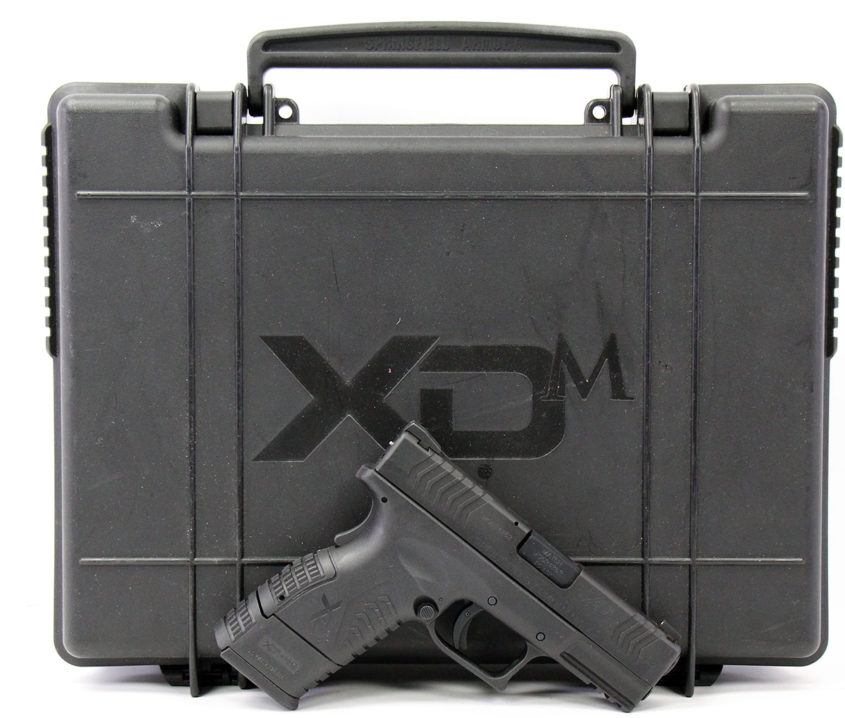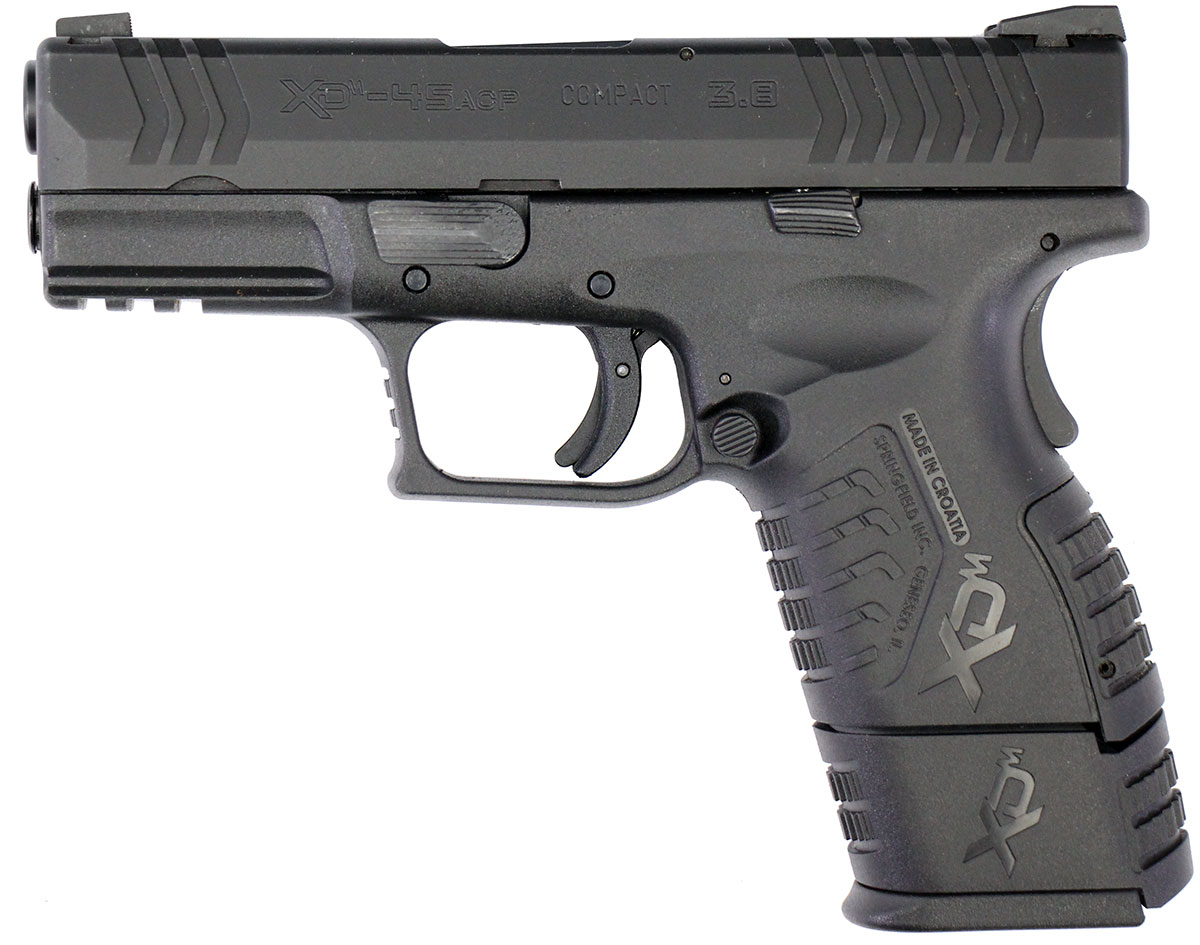This is a used Springfield Armory XDm-45 Compact pistol chambered in 45 ACP. It features a 3.8-inch barrel, 13-round magazine, fixed sights, grip safety, and accessory rail. Includes factory box, instruction manual, magazine carrier, two 13-round magazines, and one 9-round magazine. Overall, this Springfield is in good condition with normal use wear on the slide and barrel. This would be a good choice for concealed carry. Buy online today! - Brand